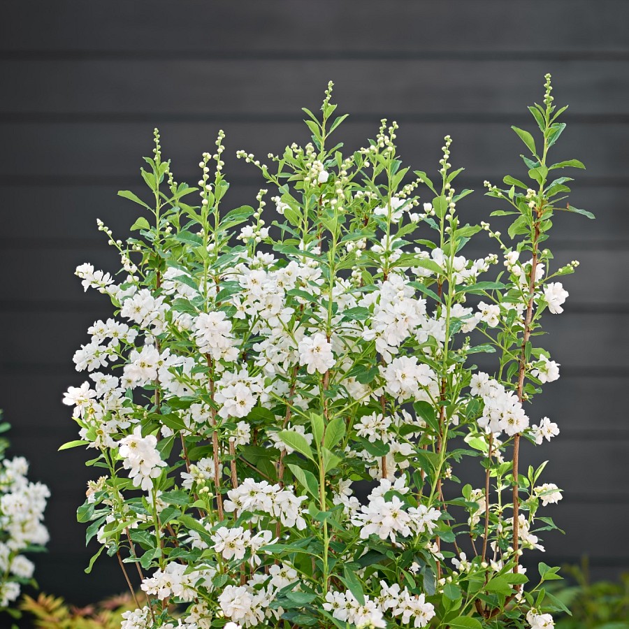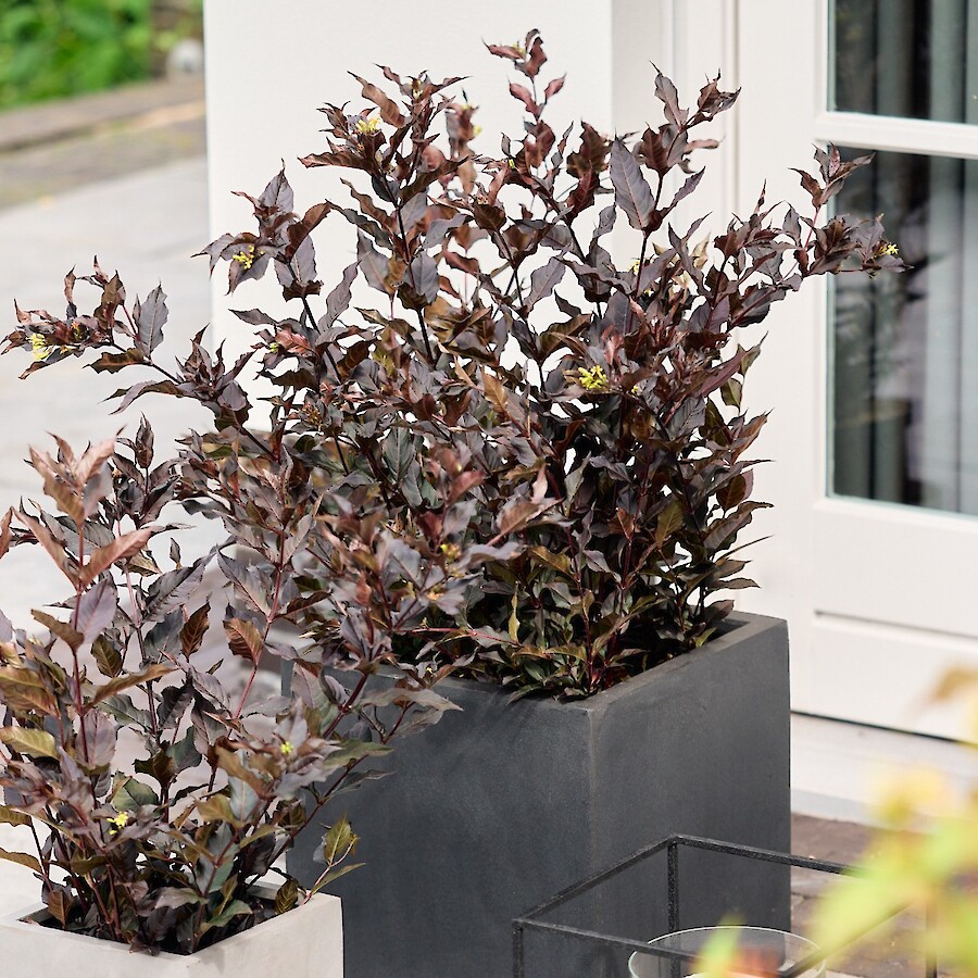 Deze Diervilla heeft donker blad dat extra opvalt doordat het krult.